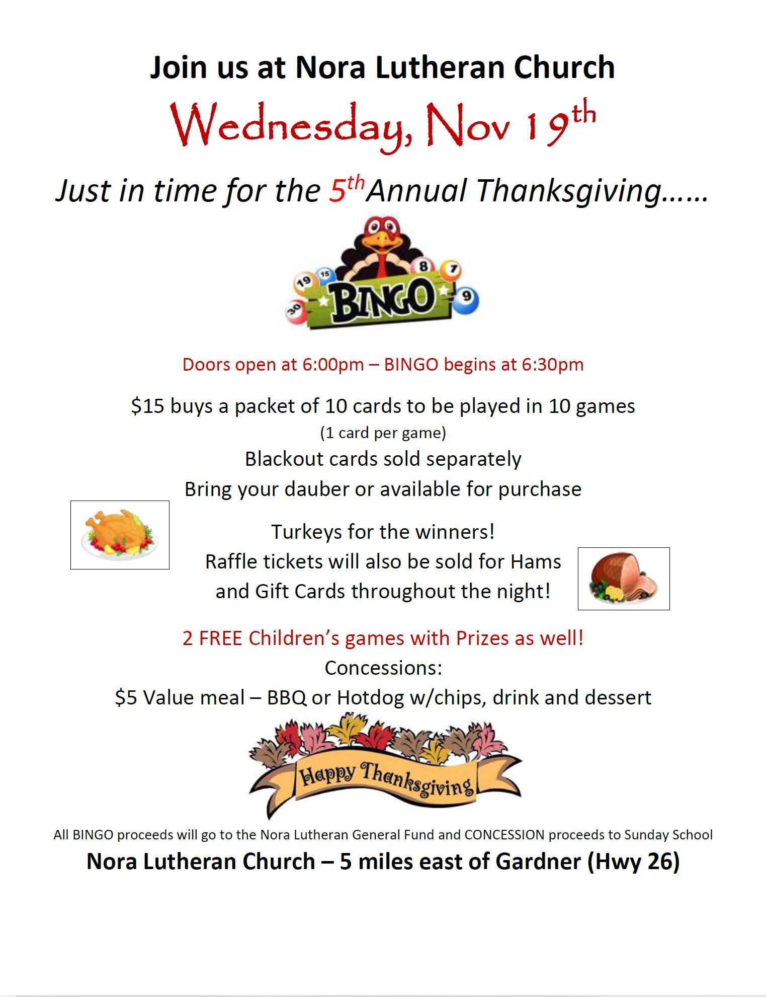 - November 19: 6pm – Thanksgiving Bingo at Nora – Official Event Poster